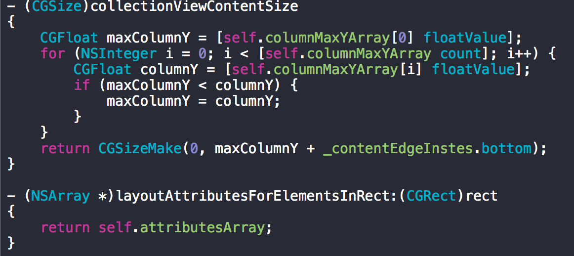 contentSize中關鍵是高度,這裡取高度最大那一列的Y值即為collectionview的高度。