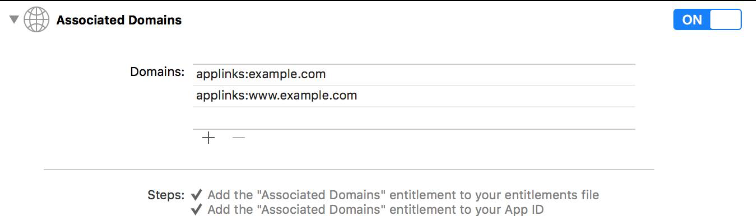 在Capabilities的設置中,設置`Associated Domains’的Domains內容