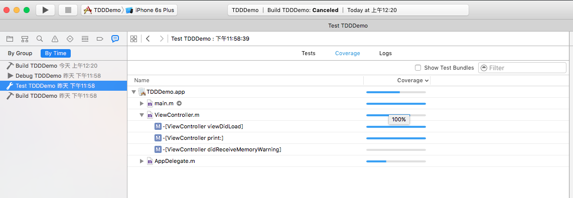 這裡代碼的主要意義是使系統不去處理 SIGTERM 信號,而自行提供處理方法。修改main.m文件之後,在跑UI自動化測試時就可以看到代碼覆蓋率了!