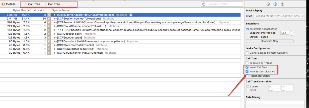 然後,再右面選擇Invert Call Tree和Hide System Library