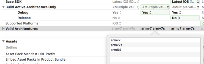 這時需要在對應Target的Build Setting中Valid Architectures中增加arm64