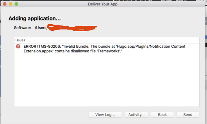 錯誤信息很明顯,Extension.appex中包含了Frameworks文件夾。如果Extension使用了Cocoapods,Cocoapods會創建這個文件夾,實際沒什麼用。解決辦法就是在Build Phases最後增加一個Build Phase,執行一段shell腳本把Frameworks文件夾刪掉。