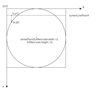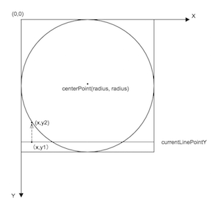 當currentLinePointY > radius時,y2=radius + sqrt(pow(radius, 2) - pow((radius - x), 2));
