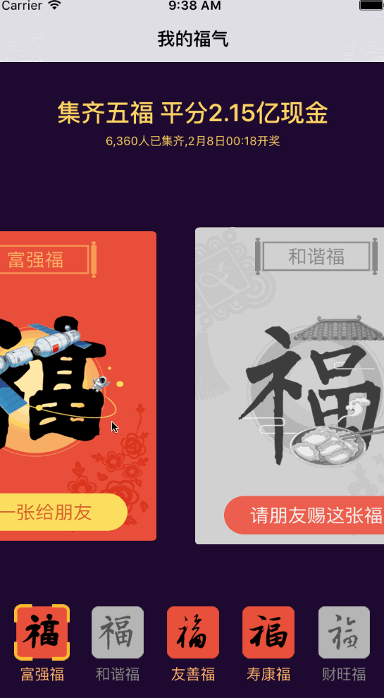 輕松集成卡片式切換效果,本Demo仿支付寶五福效果