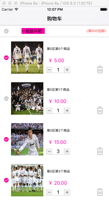 本代碼是一個簡易購物車效果,最重要的是可以分單結算,分單個商品結算,代理是主要技術。本人是菜鳥,希望各位大神給點寶貴意見。