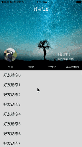 仿手機QQ空間滾動頂部視圖的效果