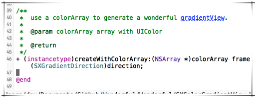所有插件裡這個是我最早使用的也應該是排第一的。 使用也非常方便但是用久了也許會發現自動生成的注釋是每一個參數和返回值都會彈出一個塊,而我們日常開發中大部分的參數和返回值都是一眼見分曉的,並不需要逐個標注,這也就使得我每次敲三道槓都還要手動刪除一部分,比較麻煩。 如果作者能提供下一種是現有的,另一種敲法是只有Description的那我會非常方便。 或者有個更燒腦的猜想,就是在現有基礎上判斷參數是否是基本數據類型還是特殊類型,特殊類型的參數才生成注釋代碼塊。返回值如果是instancetype那就不需要生成注釋代碼塊,或者判斷參數名如果是一個常用單詞(time)還是組合詞(categoryID),常用單詞就不生成注釋了也許會更好。也許是我想多了,反正這個插件是必用的,更何況現在連swift都支持了。