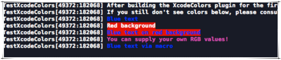 有的人會說彩色log 可以用DDLog啊,這個插件和DDLog是可以共同作用的, 也可以只用這個插件。 至少我用這個插件還是覺得挺好用的。自定義一個宏就可以在適當的敵地方彩色答應了 比較輕量級。不足之處也有,就是如果你項目中寫了很多這樣的代碼,但是如果用別人沒有裝這個插件的xcode來跑 那就沒有效果了啊。不過也無妨頂多就是調試欄不顯示顏色罷了。