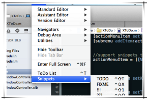 之前設置TODO 和標記某處??? 我都是手敲一個特定的符號,然後找的時候再去全文搜索。 有了這個插件,可以用快捷鍵添加TODO 和 FIXME (額這裡如果用代碼塊也是可以相同實現的)。然後提供了TODOList 快速查看自己各處的標記。等於是省去了一個搜索的步驟。 但是不足就是,ToDoList的對話框是一個懸浮的而不是像上面的SCXcodeMiniMap或是GitDiff那樣是嵌入在xcode裡面的,這樣在來回點的時候xcode的焦點和對話框的焦點會來回切換,雖然你是置頂的但還是比較影響體驗。我用搜索的話就不用來回切焦點了。 但是這個插件本身還是很不錯的。