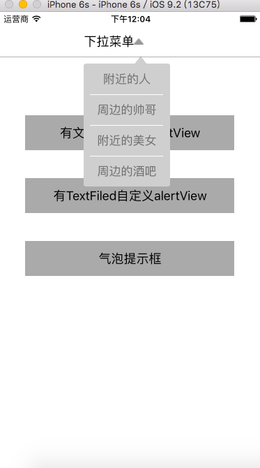 自定義下拉菜單,有textField的alertView,無輸入文本框的alertView和氣泡顯示(上傳者:Mister_Sun丶)