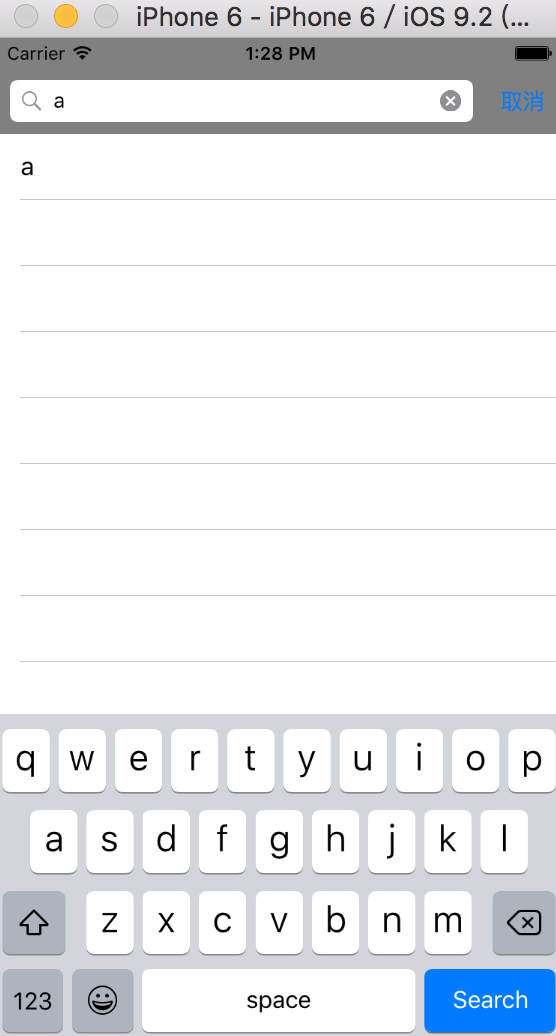 因為系統的UISearchDisplayController用起來各種坑,實在是累覺不愛,沒辦法只好自己寫一個searchView,用法和UISearchDisplayController基本相同,代理方法可以自己添加,我就只寫了一個。