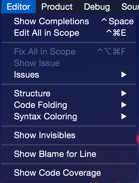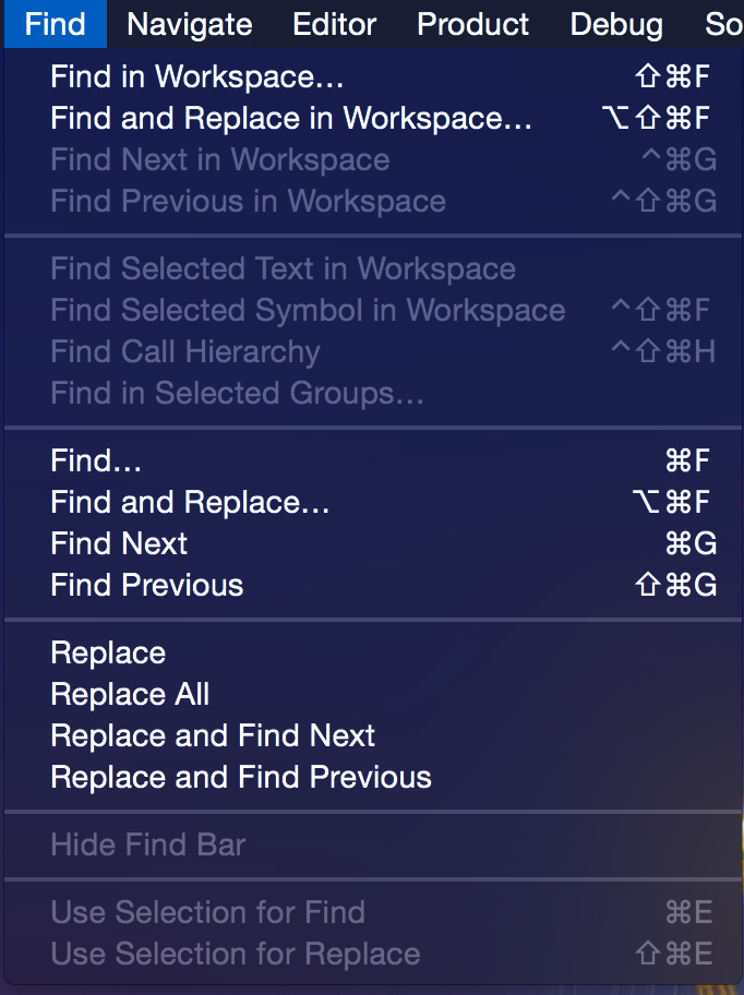 本文調研Xcode的版本是 7.1,基本是探索了菜單的每一個按鈕。雖然從xcode4一直用到了xcode7,但是一般都只是用了一些基礎的功能,說來也慚愧。在一次偶然的機遇突然發現了“顯示調用層級”的選項才知道菜單了的按鈕並不都是沒有用,而是很有用只是你不知道罷了。 本想這種東西仔細總結了也不一定有價值還耽誤時間,但是兩個想法最終還是驅動了我仔細弄完,一是xcode7.1才剛更新沒多久,這個時效性還行(xcode每年菜單變化都不小);二是這種文章屬於干貨性質,自己有時在大項目中不確定或者害怕一下點錯了的時候可以來回看一下,並且其他博友也可以查詢。