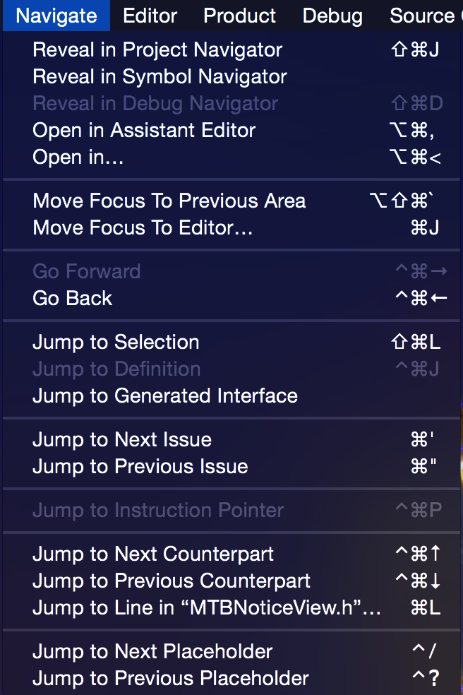 Jump to Line in xxx.m :跳到這個文件的第幾行。