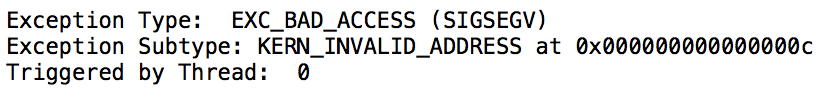 SIGSEGV: 通常由於重復釋放對象導致,這種類型在切換了ARC以後應該已經很少見到了。