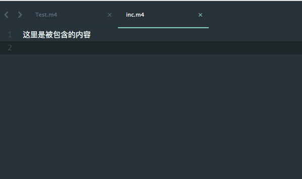 我們先來寫一個例子來感受一下m4的功能。在同一個目錄下創建2個文件,Test.m4和inc.m4。