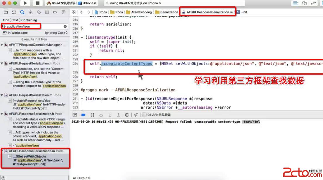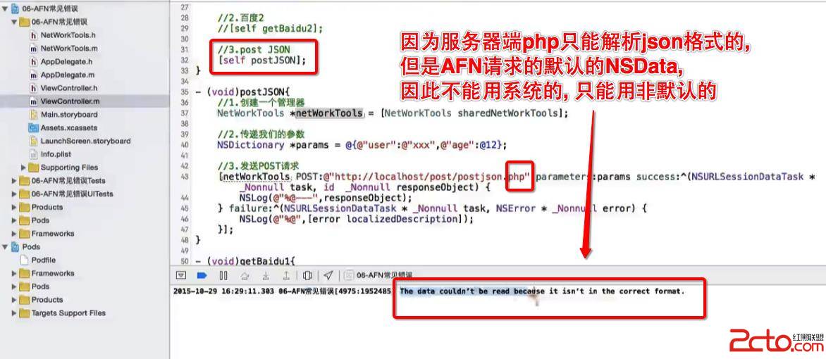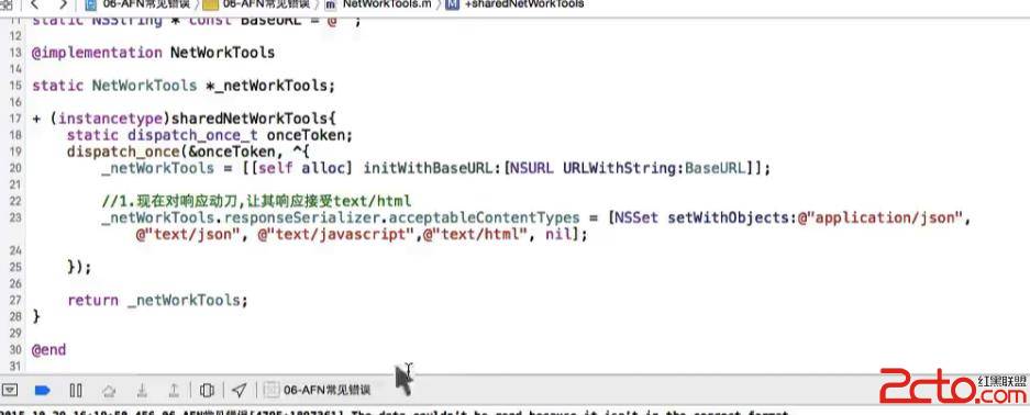 網絡請求中, 使用最多的就是AFNetworking框架, AFNetworking是一個輕量級的iOS網絡通信類庫。它建立在NSURLConnection和ios 7.0 後推出的NSURLSession等類庫的基礎上,讓很多網絡通信功能的實現變得十分簡單。它支持HTTP請求和基於REST的網絡服務(包括GET、POST、 PUT等)。支持ARC。 使用AFN的經常會遇到以下錯誤, 導致請求或者響應失敗, 主要原因就在於AFN請求和響應的默認的數據解析格式, 如果與默認的不一致就會發生解析錯誤, 導致請求和響應失敗