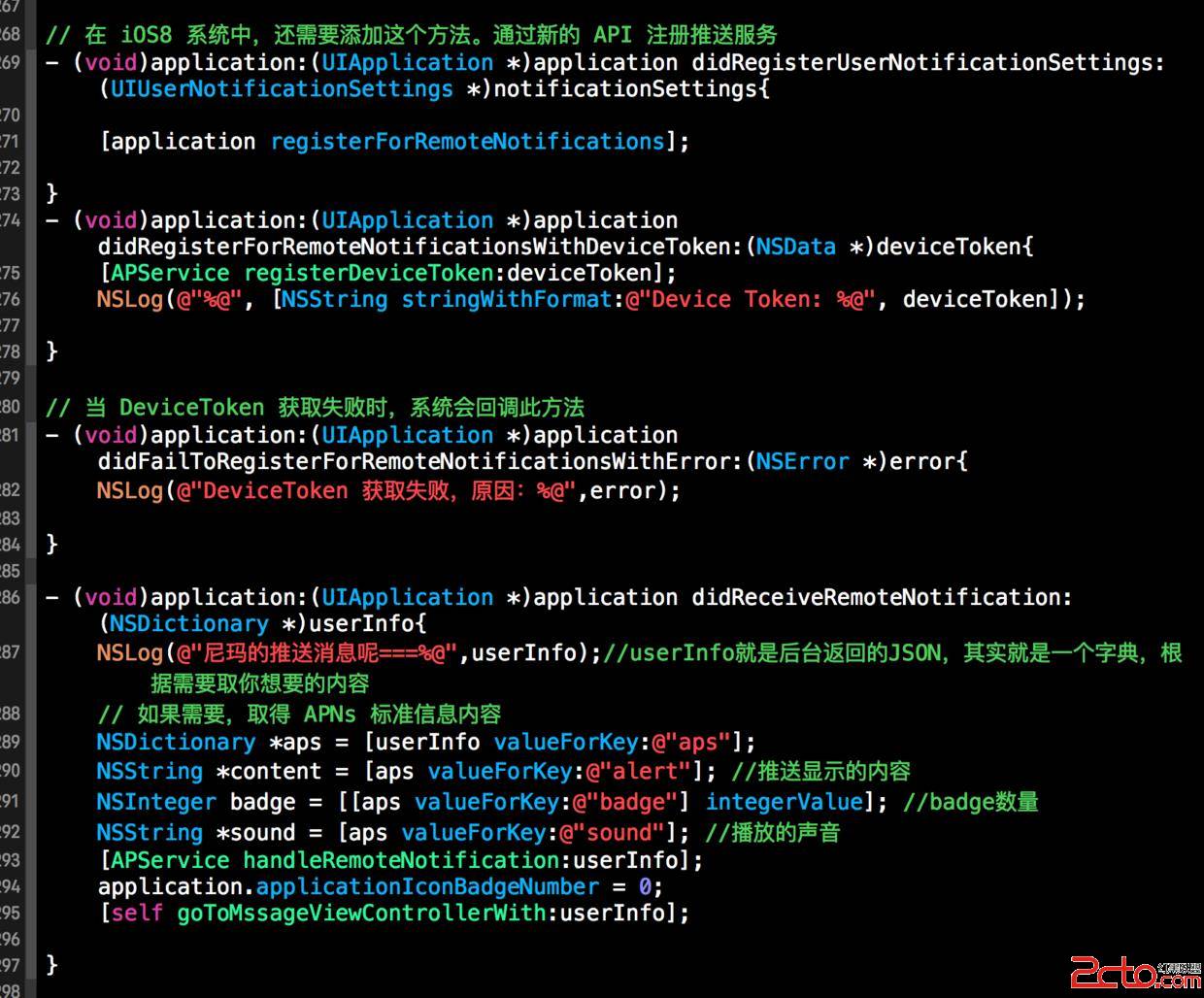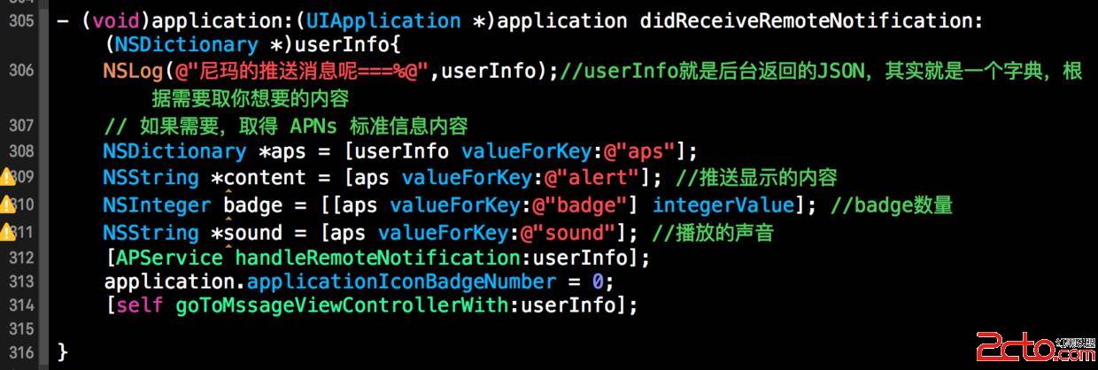 NSLog(@"尼瑪的推送消息呢===%@",userInfo);