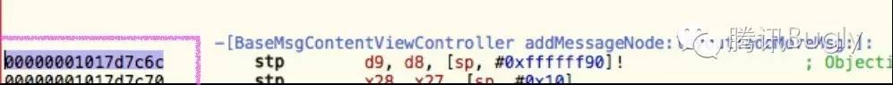 要在剛剛追蹤到的addMessageNode:layout:addMoreMsg:方法中打斷點,首先我們得知道它在運行時的內存地址,那麼內存地址怎麼來呢?有這麼一個公式: