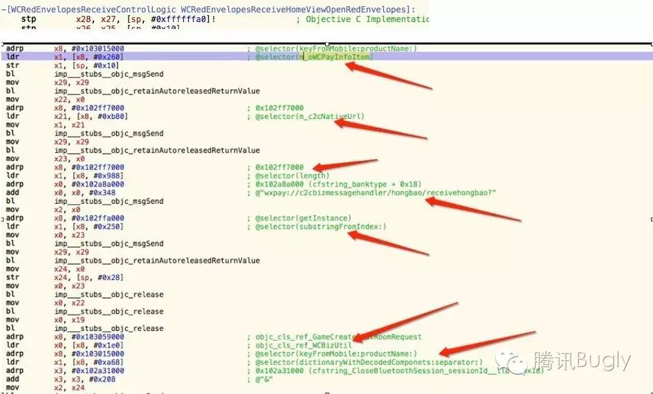 繼續搜索WCRedEnvelopesReceiveHomeViewOpenRedEnvelopes這個方法,找到它的匯編代碼