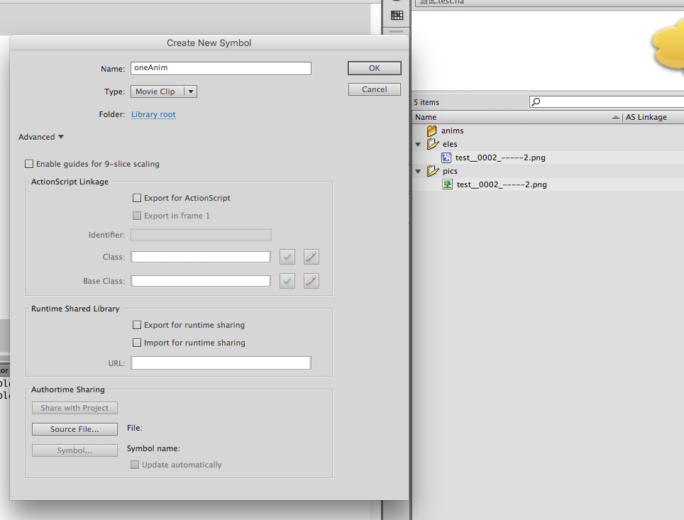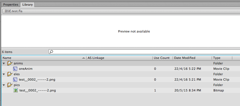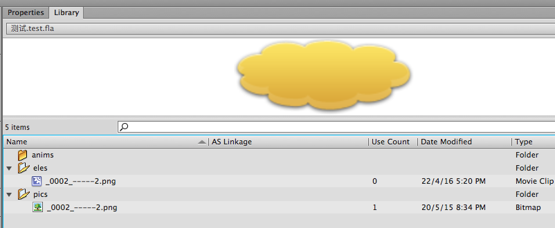 iOS可能也有此問題。因為直接拖入xcode中的文件一般選擇“create groups”,這個只是邏輯文件夾,如果其他文件夾內存在同名文件則會沖突。所以最好每次制作動畫,添加png圖片的時候,都執行一次腳本“2.修改fla中元素的名字“。