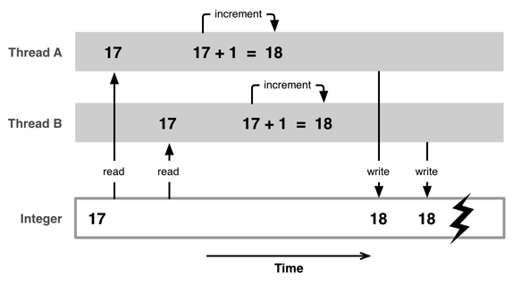 並發編程的許多問題的根源就是在多個線程當中訪問共享資源。 資源可以是一個屬性,通用的內存,網絡設備或者一個文件等等。