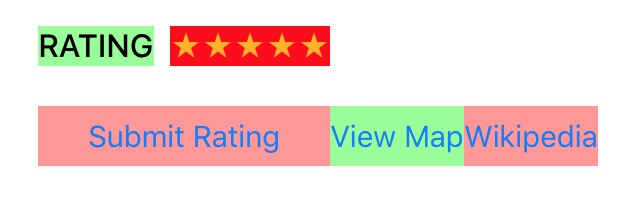 設置好約束後,能夠看到按鈕顯示如下,第一個按鈕被拉伸了,填充滿了UIStackView的剩余空間。UIstackView有一個Distribution屬性,用於控制Views怎麼在UIStackView中顯示,現在設置的是Fill,即將會填充滿UIStackView。為了這個目的,UIstackView將會根據View的ccontent hugging優先級去拉伸View,最低的將會被拉伸。如果優先級一樣,將會拉伸第一個。