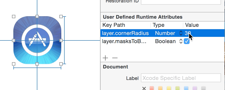 每次設置圓角,都會在Identity Inspector中改變一個rumtime的KVC變量