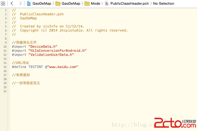 在老版本的XCode裡面,創建項目之後會自動創建有pch文件,在裡面往往寫一些經常使用的框架頭文件或者一些宏定義的URL地址,這裡面定義後可全局使用,但是在Xcode6裡面項目創建後不再自帶pch文件。pch全稱為“precompiled header”,也就是預編譯頭文件,有利於節約開發時間、代碼維護時間。