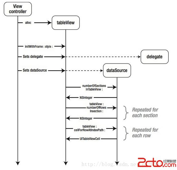 1.UITableViewDelegate,UITableViewDataSource分別為UITableView的數據與行為的代理.