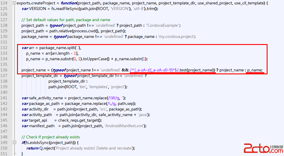 打開C:\Users\用戶名\.cordova\lib\android\cordova\3.4.0\bin\lib\create.js,找到下面紅框的內容