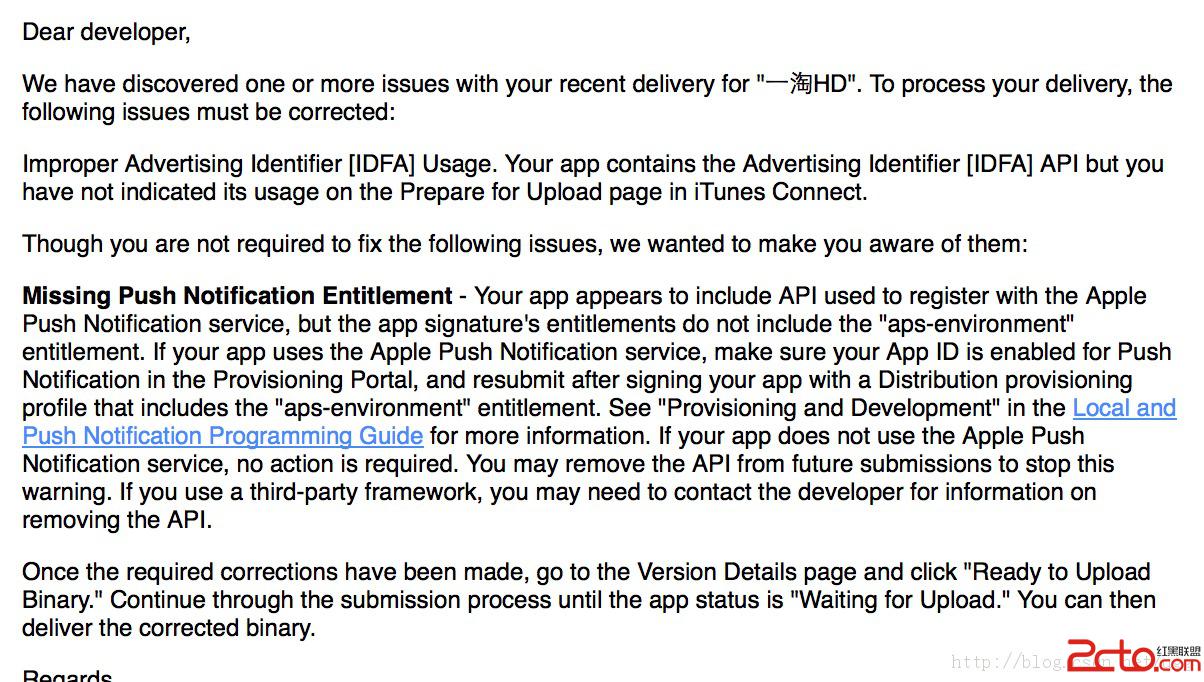 2:第二個是個notice信息,未使用帶有push授權的認證文件進行打包,這只是個notice。沒事。
