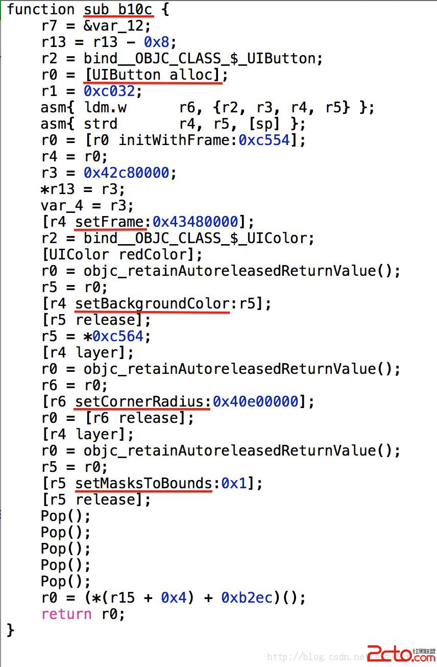 再來看一下反編的結果,對於createBtn()方法,我們可以得到它的偽代碼: