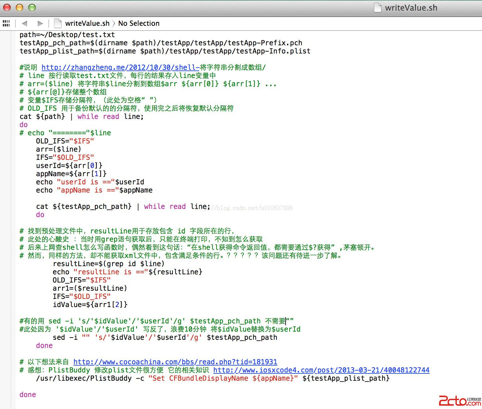 @“8952”)來表示。在打包ipa之前,去讀一個配置文件,配置文件路徑為 path=~/Desktop/test.txt,文件內容見下圖。