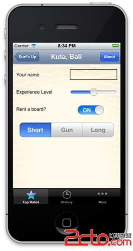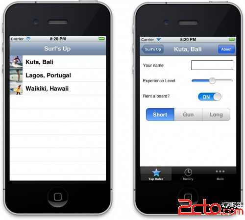 當你打開項目之後,先看看其中的代碼和XIB文件。你會發現主視圖呈現了一個沖浪之旅的列表,而細節視圖則勻速我們獲取每個沖浪之旅的詳細信息。