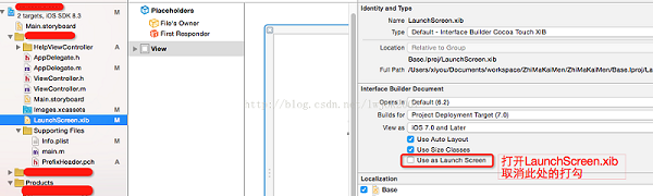 新建的iOS 項目啟動畫面默認為LaunchScreen.xib