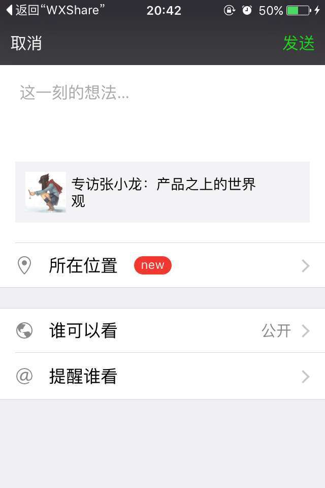 static NSString *kLinkURL = @"http://tech.qq.com/zt2012/tmtdecode/252.htm"; static NSString *kLinkTagName = @"WECHAT_TAG_JUMP_SHOWRANK"; static NSString *kLinkTitle = @"專訪張小龍:產品之上的世界觀"; static NSString *kLinkDescription = @"微信的平台化發展方向是否真的會讓這個原本簡潔的產品變得臃腫?在國際化發展方向上,微信面臨的問題真的是文化差異壁壘嗎?騰訊高級副總裁、微信產品負責人張小龍給出了自己的回復。";
