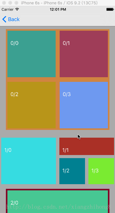 根據DataSource的Delegate,拿到所有的View應該被顯示的位置。這一步,核心是拿到的位置是確定的。根據Demo,我們觀察從 0/1 - 2/3 之間這些View,這個時候LazyScrollView拿到的Rect如下: