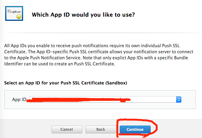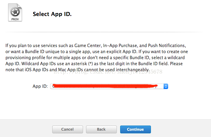 選擇你上一步創建的AppID,點擊Continue 進行下一步