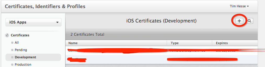 創建發布版的ProvisioningProfile與開發版的流程相同,點擊Development然後點擊右上角的加號