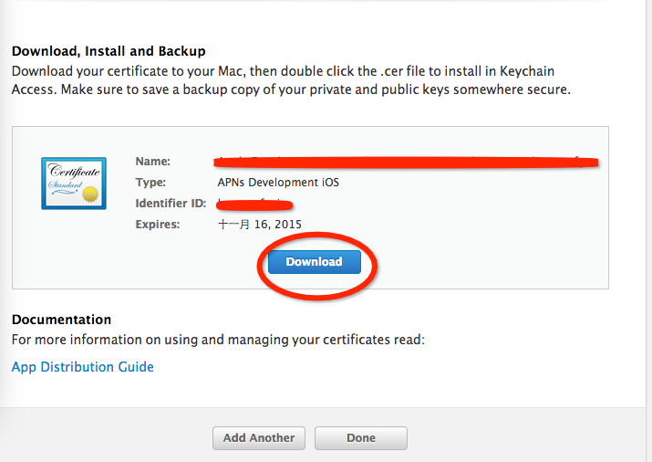 點擊下載,得到aps_development .cer,保存到push文件中去。