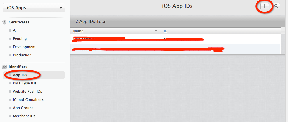 新建一個AppID,選擇網頁上的AppIDs,然後點擊右上角的 “加號”