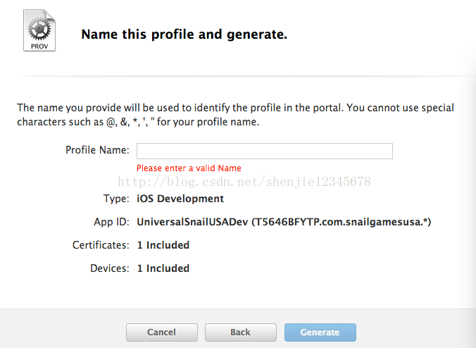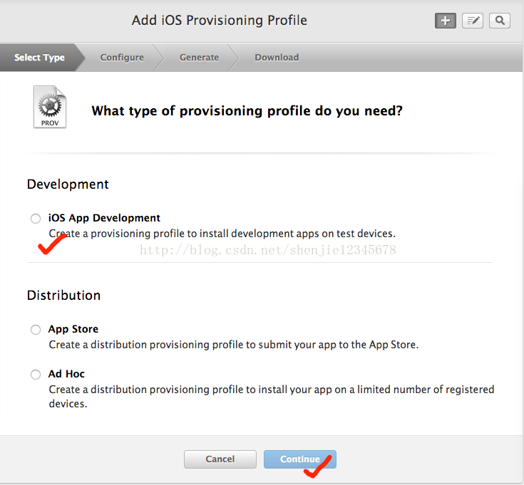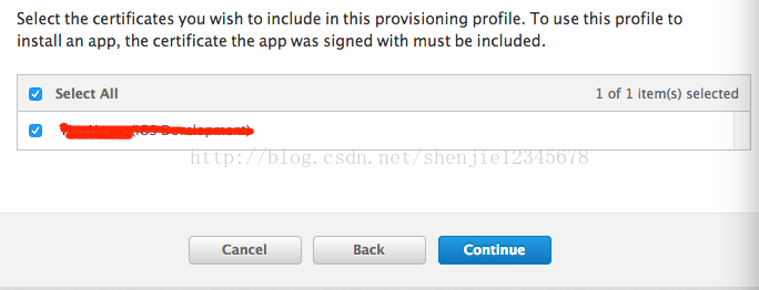 好咱們繼續回到上面的Provisioning Profile配置環節,當你選好了你的設備後點擊“Continue”進入下一頁,