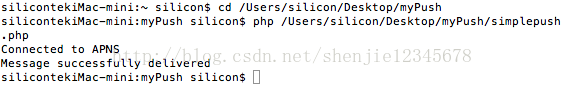 此刻就是見證奇跡的時候了,使用終端進入到push文件夾,在終端輸入 php simplepush.php