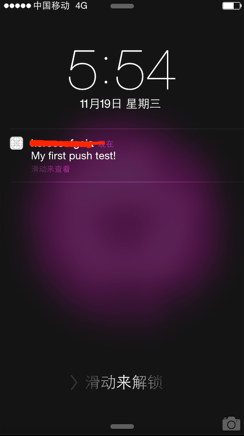 deviceToken填寫你接收到的token,passPhrase則填寫你的ck.pem設置的密碼。