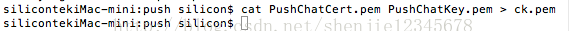 3.把PushChatCert.pem和PushChatKey.pem合並為一個pem文件,