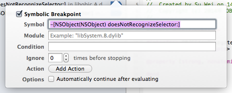 斷點,(我求你們不要想到張敬軒,阿軒他容易麼,小受又怎麼了?你們這幫人真是的!!),我要說的斷點是BreakPoint!基本上不是殘廢的IDE都具有斷點調試功能吧!尤其是XCode,我們家的IDE斷點調試功能可是強中又是強中手!在這之前大家可以先了解一下哈子是斷點?它怎麼實現的?工作原理怎麼樣的?博主就獻丑說說自己的理解吧,斷點,顧名思義就是從前有一個點,後來它斷了,謝謝,我的故事講完了。哎喲還不服,這些基礎常識的東西自己不會查?你還真的臉皮厚上天了去了,還要博主給你查喲,自己查去!