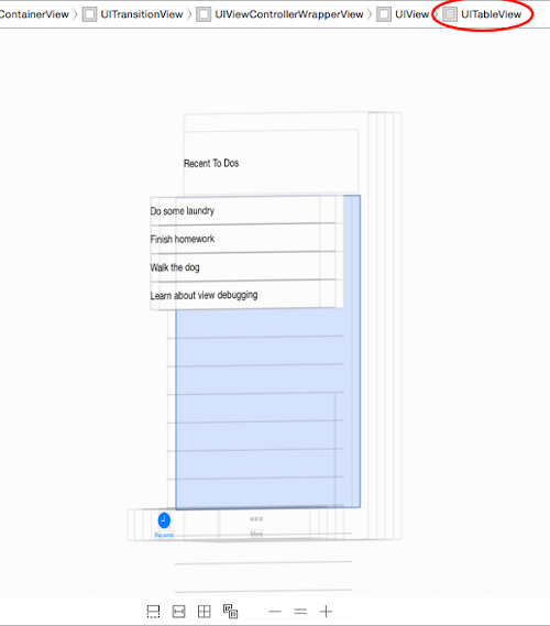 問題似乎與用戶界面有關。運行app過程中,按下底部的Debug View Hierarchy 按鈕,或者從菜單中選擇Debug > View Debugging > Capture View Hierarchy 來啟動視圖調試。
