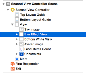 修復問題很簡單。運行時,Blur Effect View隱藏在Sky Image之下,因為它是視圖層次的第一個視圖。在文檔概覽中點擊並拖拽 Blur Effect View,結果會如下圖展示一樣: