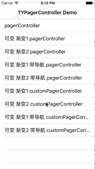 這一篇記錄的是iOS開發中第三方庫WMPageController控件的使用方法,主要是用來分頁顯示內容的,可以通過手勢滑動來切換頁面,也可以通過點擊標題部分來切換頁面,如下圖所示: