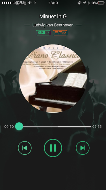 根據QQ音樂的界面做了個小demo,下面是demo的真機前台和後台播放的運行效果: